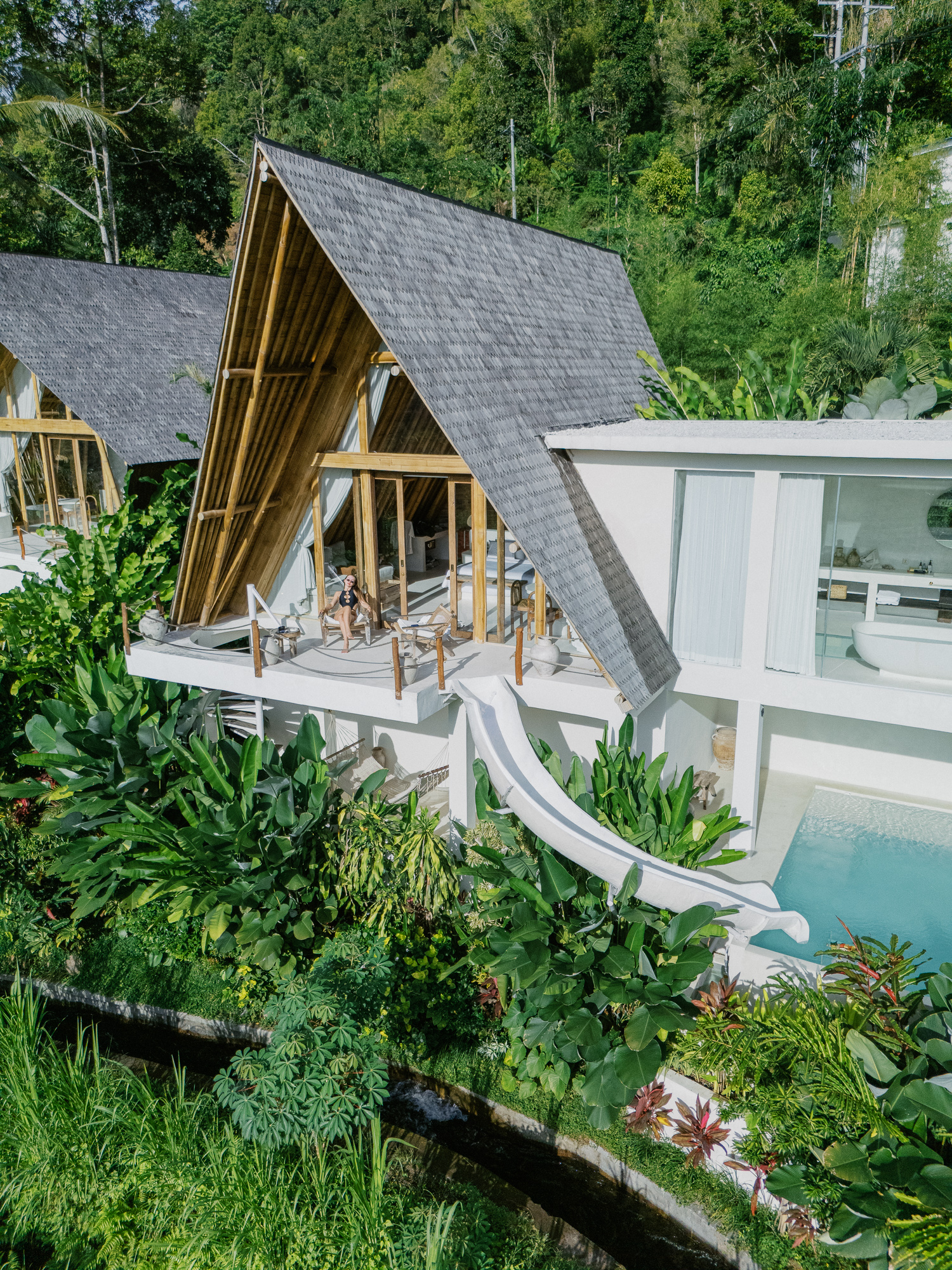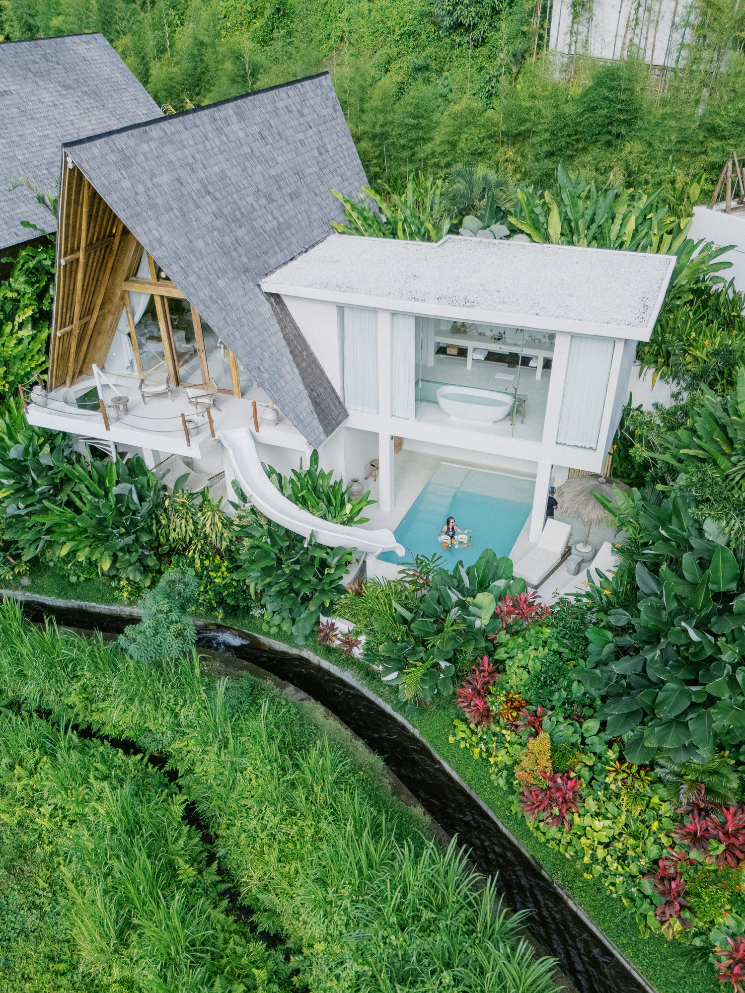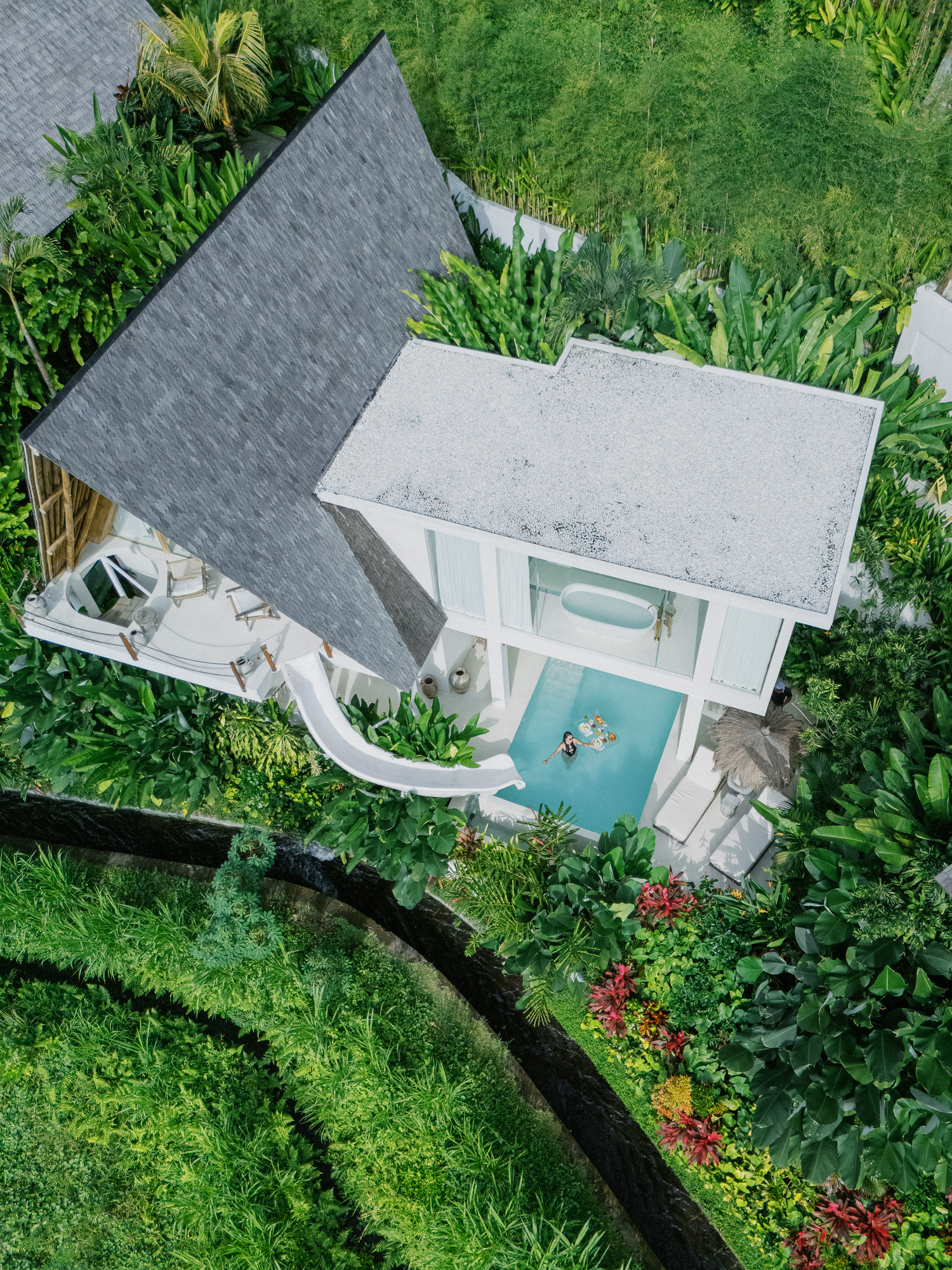 To elevate the storytelling, we integrated drone photography. From above, the geometric lines of Numa Bali’s architecture create a striking contrast against the organic curves of the surrounding landscape. These aerial shots provide a cinematic scale, positioning Kesnia as a focal point within the vast beauty of the island.